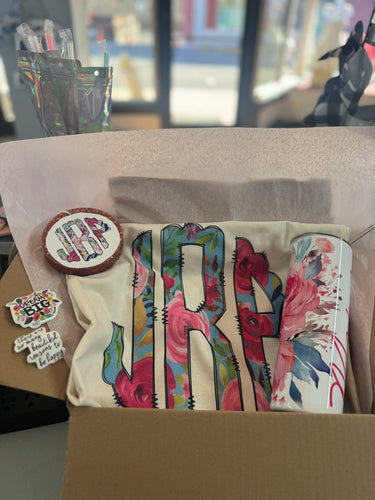 Subscription box with a freshie/bookmark and a 20oz tumbler